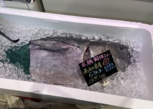週末にはこんなに大きなお魚もあり、店内は広くてとても商品数が大きく見やすかったです。