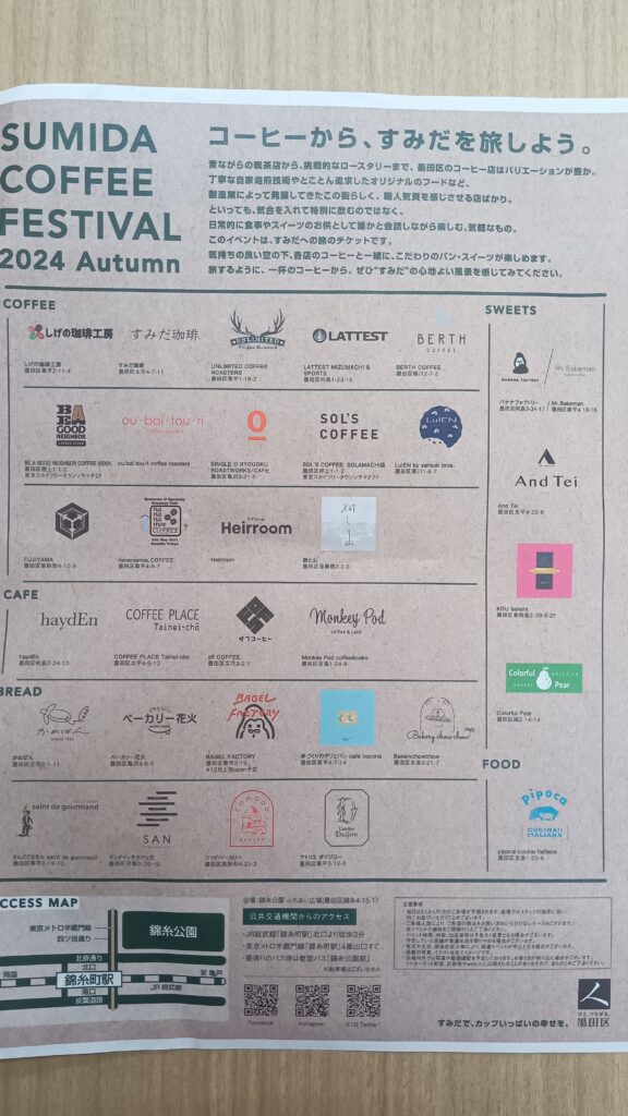 墨田区錦糸公園のコーヒーフェスティバルが開かれています。墨田区内の老舗や新しいコーヒー店がブースを開いていました。もちろんコーヒーだけではなく合いそうなスイーツやパンも売っていました。奥のひがしんアリーナではDDTプロレスの試合もあるそうでプロレスの選手も食べながらコマーシャルをしていたりして公園中いい香りが漂ってました。フェスティバルは4日17時までなので興味のある方はお急ぎください。墨田区家族葬窓口は24時間365日、葬儀に関するご相談を受け付けています。葬祭ディレクター1級が在籍、誠心誠意サポートいたします。葬儀に関するご相談はこちらから、電話03-5608-4940