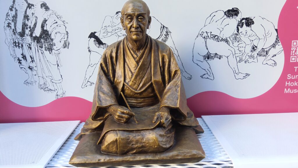 葛飾北斎の生誕地ははっきりしていませんが、本所南割り下水とよばれていた墨田区亀沢1~4丁目の何処かだろうと推測されています。今は緑町公園として北斎美術館が建っている場所に生誕地の案内版があります。ここはかつて津軽藩の江戸上屋敷が有り本所七不思議に登場する「津軽の太鼓」の舞台にもなったところです。ブロンズ像は今年1月16日に住居跡そばのひがしん両国本部ビルに設置されたものです。墨田区家族葬窓口は24時間365日、ご葬儀に関するご相談を受け付けています。葬祭ディレクター1級が在籍、誠心誠意サポートいたします。お気軽にお問い合わせください。 お問合せ フリーダイヤル0120-56-4940