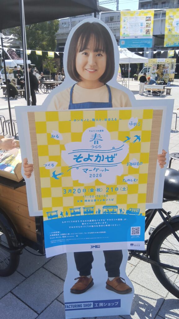 隅田公園そよ風ひろばで春のそよかぜマーケット開催しています。墨田区は古くから「ものづくり」の街として発展してきた歴史があり3M運動とはMuseum(博物館).Meister(マイスター).Manufacturing shop(工房ショップ)の3つのMを通じてすみだのものづくりの魅力を伝えてゆく運動だそうです。その一環として各工房のワークショップが出店され、実際に職人さんの指導を受けながら製作体験ができます。今日はカバンやレザー加工、ガラス彫刻などがならんで家族連れの方々がものづくりを楽しんでいました。当然地元の飲食店のキッチンカーも出店していたので、気になった両国もつ煮でお昼を兼ねてタンパク質補給しました。もつが大きくて美味しかったです。マーケットは今日21日16時まで。墨田区家族葬窓口は24時間365日ご葬儀に関するご相談を受け付けています。葬祭ディレクター1級が在籍、ご家族の想いに寄り添ってお応えいたします。【電話でのお問合せ】0120-56-4940