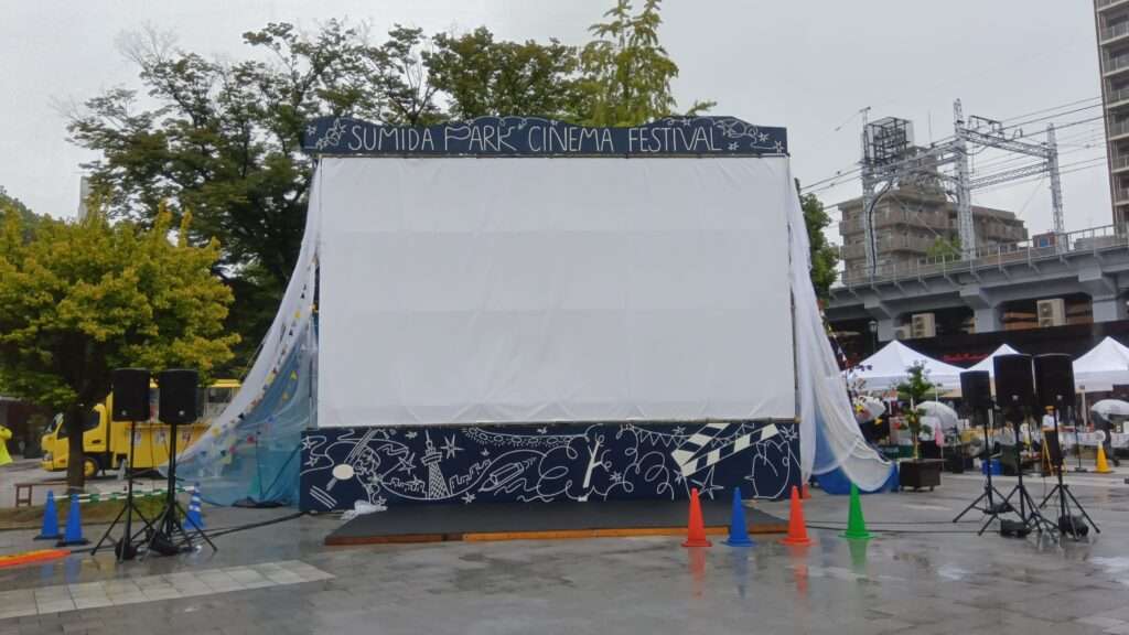 隅田公園そよ風広場で、今年5周年を迎える「すみだパークシネマフェスティバル2025」開催中です、今日から3日間17時30分から2本ずつ特大スクリーンで映画が楽しめます。夕方の放映までは広場で音楽やダンスのパフォーマンスがあるのですが生憎の雨で寒いのと足元が悪い?事もあり13時の時点では静かでした。だだ今年もマーケットやワークショップ、フードのブースが並び、最多で70店にもなるそうです(訪問時は20店位?)。今日の映画は家族で楽しめる「アイアンジャイアント」「ぼくのお日さま」の予定、12日は「super happy for ever」「イエスタデイ」、最終日13日には「バービー」、終戦80年を記念して「この世界の片隅に」が公開される予定です。傘を挿さずに鑑賞できればいいのですが・・。墨田区家族葬窓口は24時間365日、ご葬儀に関するご相談を受け付けています。経験豊富なスタッフがご家族の想いに寄り添ってお応えいたします。【電話】0120-56-4940お気軽にお問い合わせください。