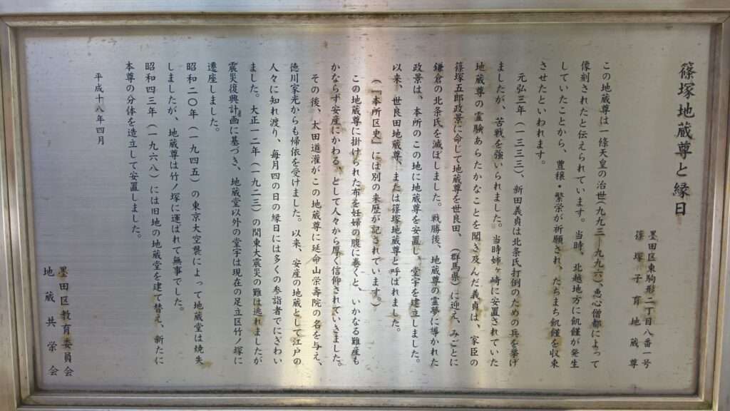 墨田区東駒形にある篠塚地蔵尊は古く933年に造られました。時代は過ぎて1333年には新田義貞が北条氏打倒のためにこの地蔵尊に願をかけ見事に滅ぼし祈願成就しました。その戦のすぐ後、家臣、篠塚五郎政景が霊夢に導かれこの地に安置しお堂を建立。その時から篠塚地蔵尊と呼ばれるようになりました。後には太田道灌や三代徳川家光からも帰依されるほどで、この地蔵尊に掛けられた布を腹に巻くとどんな難産も安産になると云われて沢山の信仰を集めたそうです。小さなお堂ですが地元の人々に大事に守られている事が伝わってきます。帰りは近くの満願堂さんの「いもきん」、「江戸きんつば」詰め合わせで糖分補給(どっちから食べようかな)。墨田区家族葬窓口は24時間365日、ご葬儀に関するご相談を受け付けています。葬祭ディレクター1級が在籍、ご家族の想いに寄り添ってお応えいたします。【電話】0120-56-4940お気軽にお問い合わせください。