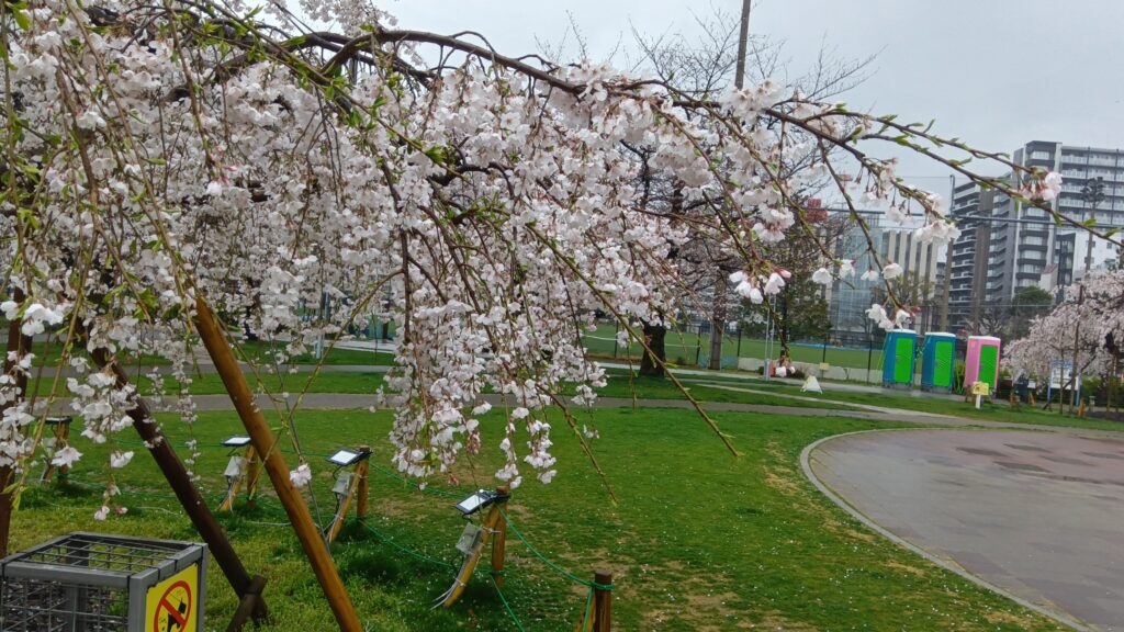 一昨日テレビで錦糸公園の桜が満開を迎えたと言っていましたが、今日の雨と風で散ってしまうと思い行ってみました。確かに満開で木によっては葉が出ているものもありました。枝垂れ桜が有名だそうで確かに姿もキレイで天気がよければもっと感動的だと思いましたが、人が多くて木だけで撮るのは難しかったでしょう。29~30日で「すみだライブフェス」というイベントもやっていてステージでアーティストが歌っていましたが強風と寒さで観客は私含め5人しかいませんでした。こんな時も明るく元気に歌っているプロのアーティストを見ていつの間にか応援していました。因みに食べ物屋さんのテントも沢山出ていたので、明日は沢山の人であふれるでしょう。墨田区家族葬窓口は24時間365日、ご葬儀に関するご相談を受け付けています。葬祭ディレクター1級が在籍、誠心誠意サポートいたします。電話0120-56-4940お気軽にお問い合わせください。