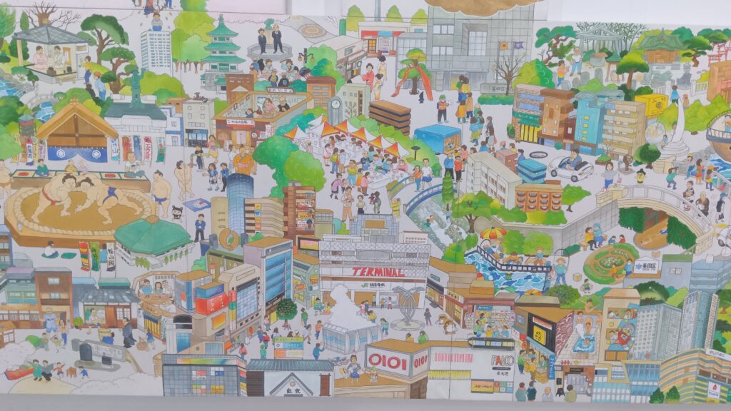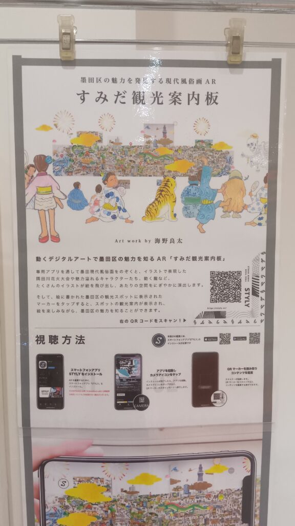 錦糸町パルコ7階に現代アーティスト海野良太さんが書いた「すみだ観光案内版」が展示中です。これは実は動くデジタルアートで、手持ちのスマホに専用アプリ「STYLY」をインストールし会場にあるQRコードを読み取ることでコンテンツを鑑賞でき、絵に表示された沢山のマーカーの気になる所をタップするとその場所の詳しい観光案内が表示され、動く絵を楽しみながらすみだの魅力を知ることができるそうです。恥ずかしながら最近になってこの展示の存在を知りました。よく見るとあちこちに何げなく知ってる場所が描かれ思わず笑顔になってしまいます。墨田区家族葬窓口は24時間365日、ご葬儀に関するご相談を受け付けています。葬祭ディレクター1級が在籍、ご家族の想いに寄り添ってお応えいたします。【電話】0120-56-4940お気軽にお問い合わせください。