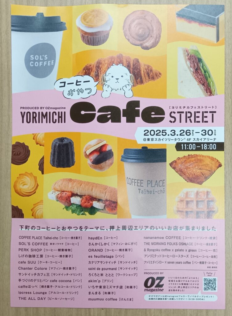 東京スカイツリータウンでヨリミチカフェストリートやっています。スカイツリーの周辺で開いているコーヒー店と軽食のお店が集まっていて今年はなんと27店も出店してるそうです。前から名前を聞いていたり噂を聞いていたお店が多数出店しています。・キラキラ商店街のけん玉コーヒー屋さんも海外からの旅行客から拍手を受けていました。私はずっと気になっていた京島のサンドイッチ屋さんの煮卵サンドと厳選素材で作る向島のおにぎり屋さんのおにぎりでお昼にすることにしました。お腹が空いていたのでカフェストリートなのにコーヒーを見てこなかったことに帰ってから気づきました・・。3月30日まで開催しています。墨田区家族葬窓口は24時間365日、ご葬儀に関するご相談を受け付けています。葬祭ディレクター1級が在籍、誠心誠意サポートいたします。電話0120-56-4940お気軽にお問い合わせください。