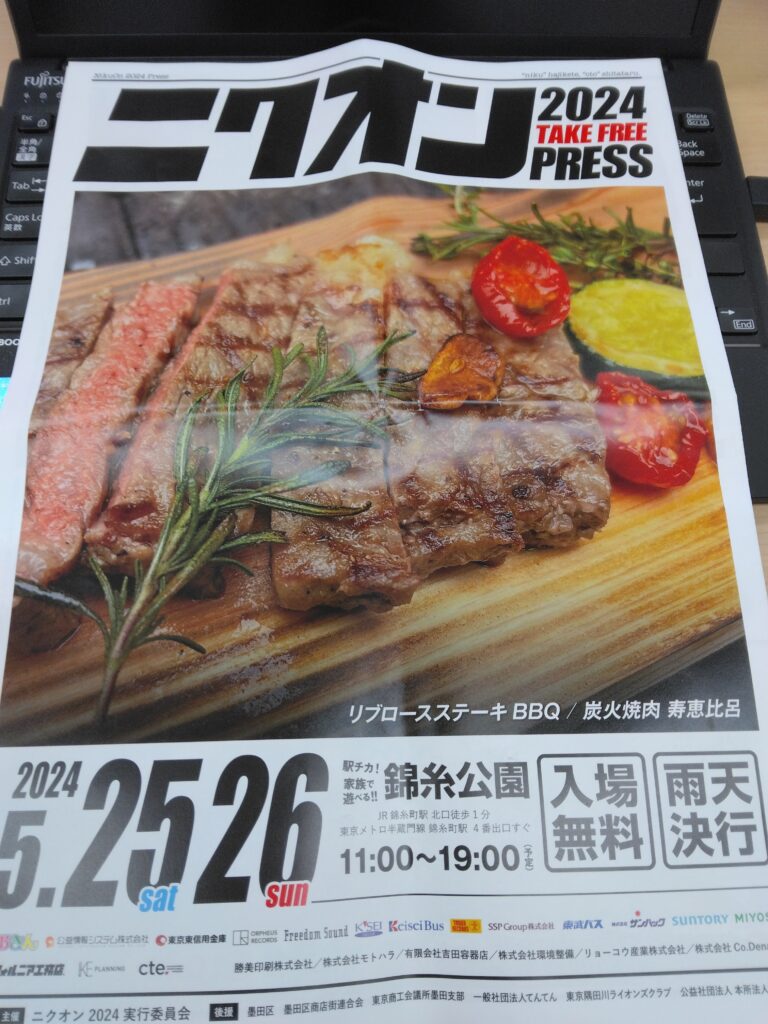 午前中は隅田公園でしたが錦糸公園でもフェスやってました。有名なJ・POPアーティストの演奏と有名肉料理屋さんの出店です。こちらは私でも知ってる山下久美子さんや矢井田瞳さん、SHOGUNさんなどが出演するそうです。ラテンミュージックやカリブ料理もいいけど、J・POPとタン塩やホルモンもいいですね。こちらも26日19時ごろまでやってるみたいです。