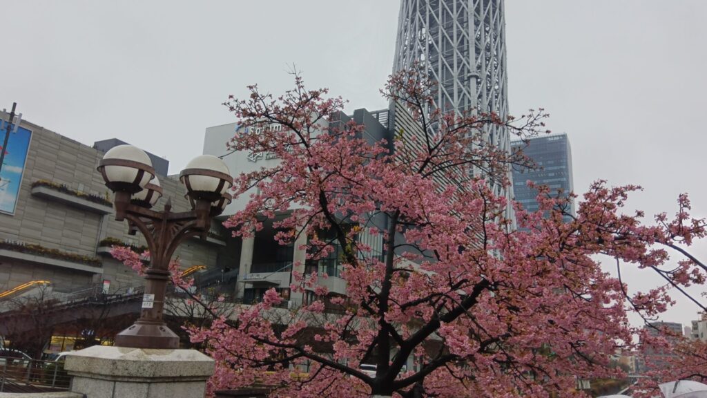 東京スカイツリーふもとの北十間川の河津桜が見頃を迎えたようなので、何年か前に伊豆の河津町で雨の日に見た桜がすごくキレイだったのを思い出し、まとまった雨の降っている今日を選んで行ってみました。人も少ないだろうと思ったのですが桜と写真を撮る人が途絶えませんでした。何日か前エレベーターが止まるアクシデントがあったので、稼働しているのかはわかりませんが、展望台は雨でかすんでいて桜とのツーショットはとても幻想的でした。墨田区家族葬窓口は24時間365日ご葬儀に関するご相談を受け付けています。葬祭ディレクター1級が在籍、ご家族の想いに寄り添ってお応えいたします。【電話】0120-56-4940お気軽にお問い合わせください。