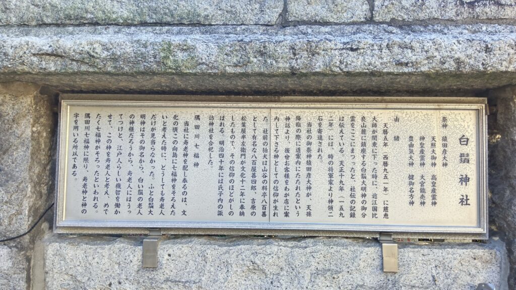 墨田区東向島にある白髭神社は951年平安時代、天台宗の第18代座主である慈恵大師が関東に下った折に近江にある白髭大明神の御分霊をこの地に祀ったのが縁起です。祭神は7柱で主神は猿田彦大神(さるたひこおおかみ)、この神は古事記、日本書紀に出てくる天孫降臨で天照大神の命を受けた瓊瓊杵尊(ににぎのみこと)の道案内をした神様であることから、人を正しい道に導き願いが叶うとして広く信仰を集めています。白髪で白い髭をたくわえた姿であることから白髭神社となりました。墨田区家族葬窓口は24時間365日、ご葬儀に関するご相談を受け付けています。葬祭ディレクター1級が在籍、誠心誠意サポートいたします。電話0120-56-4940お気軽にお問い合わせください。