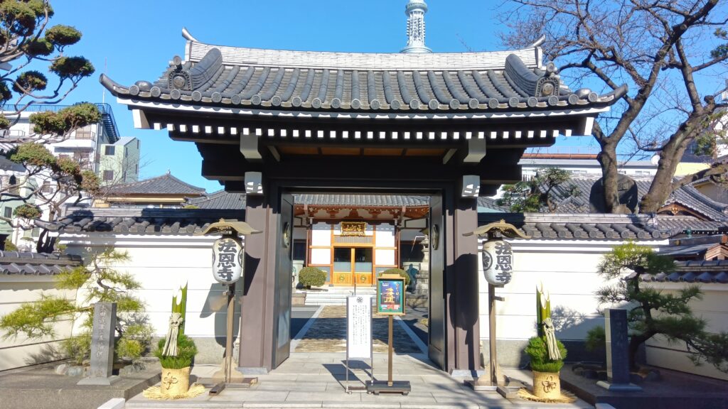 墨田区太平にある法恩寺はすっかり新年を迎える用意が出来ていました。大横川親水公園のレリーフにある本所七不思議の1つ「送り提灯」の舞台になったのは実はこのお寺の通り沿いだと云われています。「大横川近く、法恩寺出村(太平一丁目)に伝わる話です。人気のない夜道に2人の男が歩いていると、道の先にパッと提灯のあかりがともりますが、近寄ると急に消えてしまいます。暗闇に驚くと、道の先に提灯がともることの繰り返しで、決して提灯に近づくことはできませんでした。」という話です。確かに今も塔頭のお寺が並んでいて夜は少しさみしいかもしれませんね。墨田区家族葬窓口は24時間365日、ご葬儀に関するご相談を受け付けています。葬祭ディレクター1級が在籍、誠心誠意サポートいたします。電話0120-56-4940 お気軽にお問い合わせください。