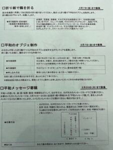 区役所の壁に飾られるこの平和のオブジェの制作ボランティアを募集しているので、是非ご参加してみてはいかがでしょうか?